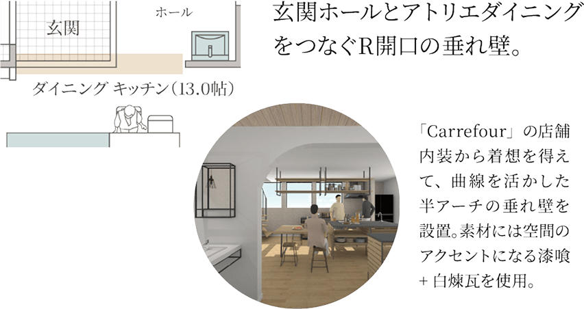 LDKと玄関ホールをつなぐ落ち着きの空間。